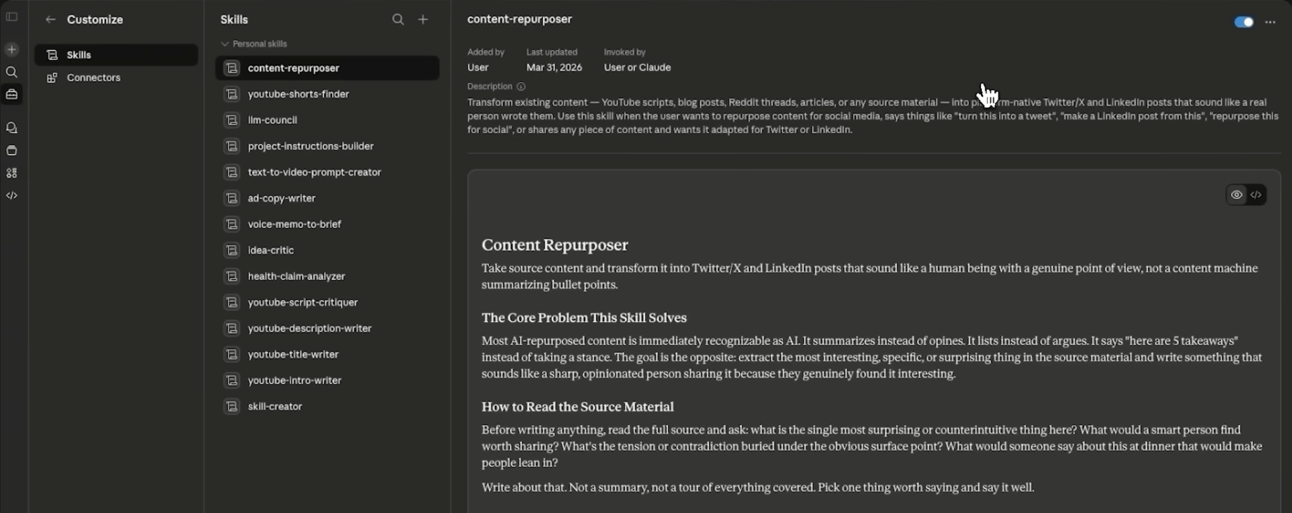 ✅ Repeats strong workflows through skills, so you don't have to rewrite the same prompt every week
