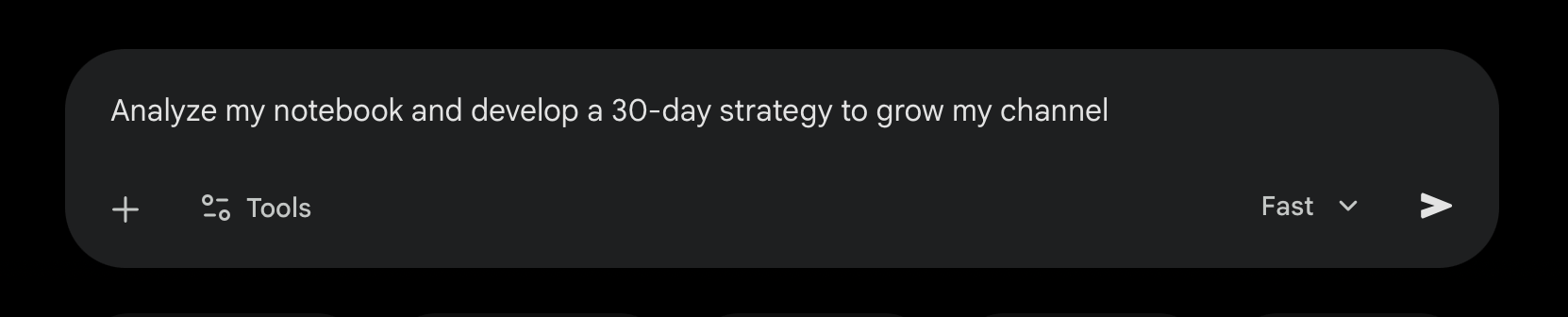 Once Gemini had the notebook context, we asked for hooks, topic ideas, and a 30-day publishing plan. The answers were much more useful than a standard brainstorm because they were shaped by both the creator’s own history and what was happening right now. Instead of getting generic ideas, we got ideas that fit the channel and the moment.