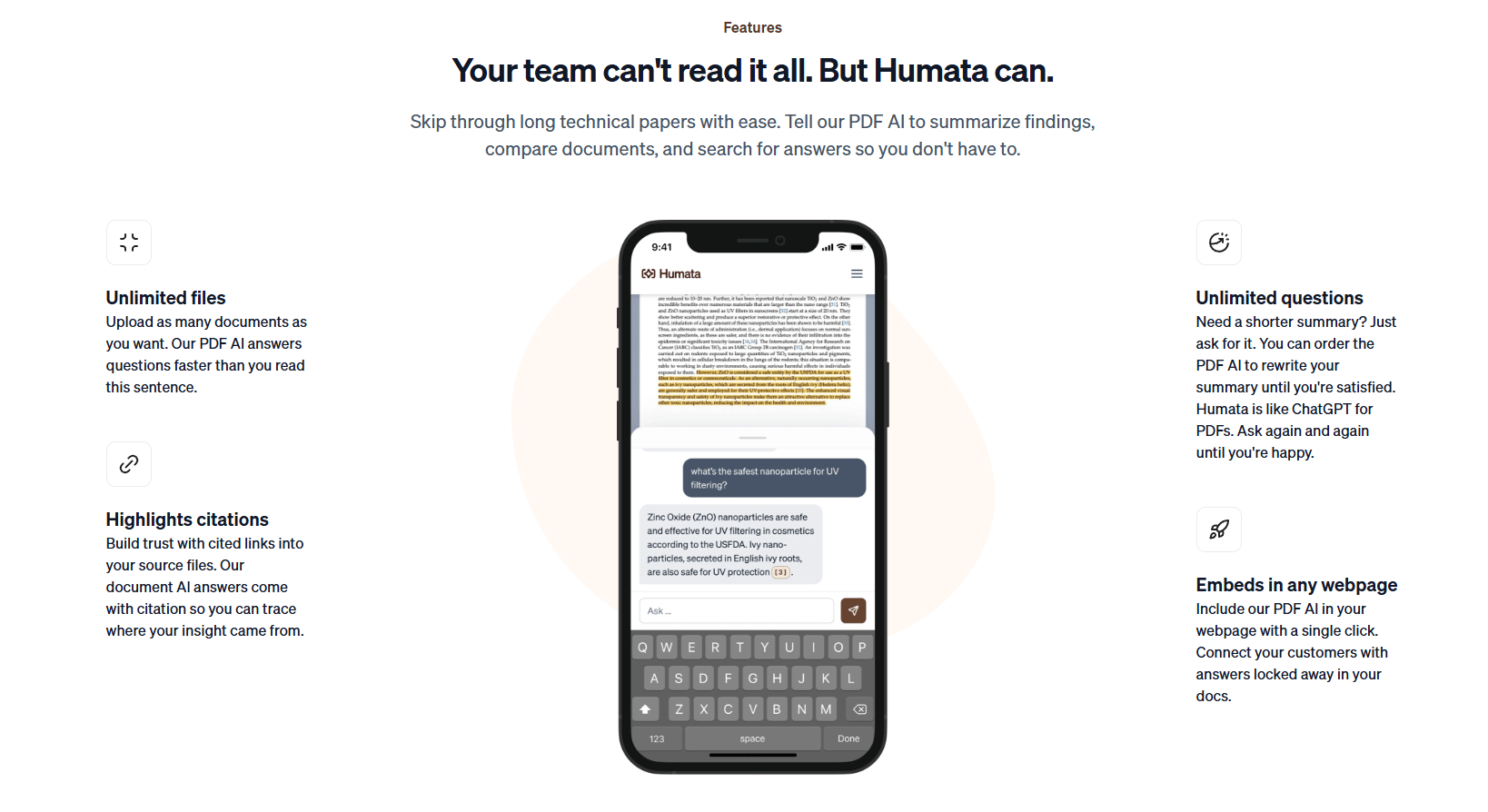 Work with any file type including scanned PDFs (OCR on higher plans) so no document gets left behind